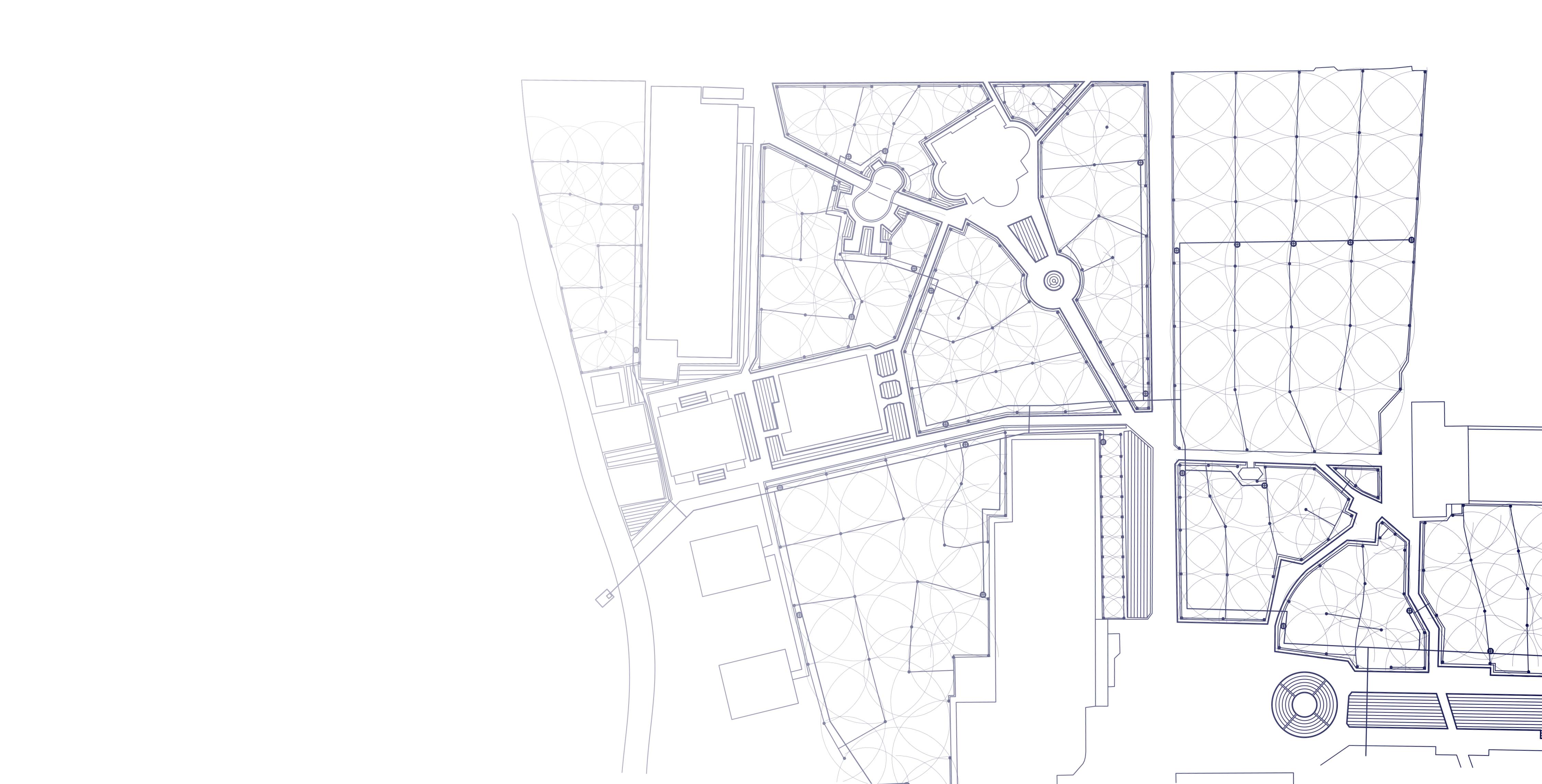 Побудувати багатозонну систему для великої публічної території зі складним ландшафтом, пішохідними зонами й різними типами озеленення.